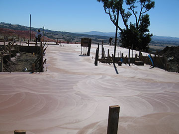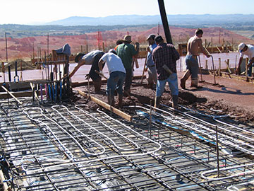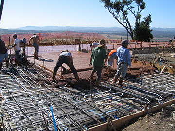 Here is the way the slab looked after the final hand trowel. Contrast this picture with the one from last week taken from the same place—what a difference a slab makes. |