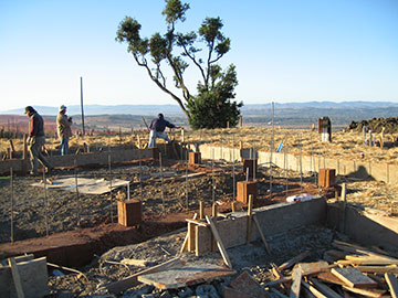 First thing Wednesday morning, I arrived at the site and took these shots of the slab as the crew was removing forms. In the foreground you see one of the column bases with the form removed. I have some concerns about these because they were supposed to have had the forms removed and been hard troweled to make the edges more crisp and get rid of the form marks. Somehow this got neglected in the intense work during the pour. |
