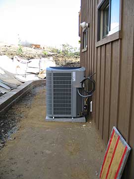 We also got the HVAC unit all hooked up in the barn. Earlier this year, after much angst, I decided to take the AC off the cottage construction and add it to the barn. My rational was that the cottage—as well insulated as it is—would stay comfortable, even on a hot day. The barn, although it is insulated, is not as well insulated as the cottage; plus, the second floor, where my office will be, will catch all the rising heat of the structure. In reality, neither of these structures has ever been uncomfortable from the heat, but we did not really have much hot weather this summer, so we will have to wait and see whether this was a good idea or a waste of money. Whatever, the unit is huge. It sits on its own little pad, which the HVAC guys brought with them and installed. I was amazed at how big the thing is, but the HVAC guy told me that it was a very efficient unit and would work very well. |