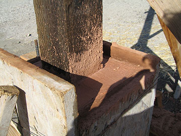 Here is the top of one of the carport piers. How glad I am that they are red instead of gray! | |