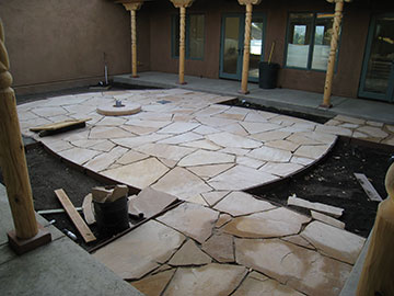 The flagstone in the courtyard is almost complete. I hope it doesn’t darken up from the sand underneath because I love the color of it the way it looks right now. |