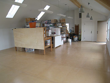 In this shot, taken from the corner of the barn, you can see all the stuff I moved to make room for the floor painting. | |