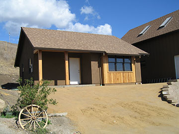 I am back from New Mexico and so much has been completed while I was gone. The cottage got its final coat of plaster. As you can see, it matches the barn and is quite brown. While I was in New Mexico, I looked at a lot of buildings to compare those colors with ours. In Santa Fe, all the buildings are some iteration of brown plaster, although the variations of browns seem infinite. Most of the darker browns there are redder than this and our brown is still a little darker than most in the southwest. I don’t think the redder color would work with our surroundings as well as this, though. |