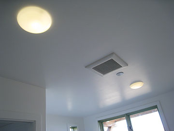 The hallway cans had also been trimmed out, and now function. These lights had originally been set up by our lighting designer as wall-washers and there had been a lot more of them. We had pared down the quantity because of cost—and then went to the 6" cans because we had had so much difficulty with the insides of the 4" ones in the cottage. I am now concerned that the sliding door closet will be quite dark, but I guess we will just get used to it. | |