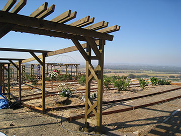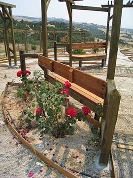 Looking northwest through the gazebo gives you a good view of one of the benches with a back. I decided to only have two benches with backs—those on the east side. Putting backs on the west side would have obscured too much of the view. |
