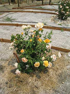 The rose on the left is Dallas and the one on the right is Cocktail. Cocktail is a rambler that will be trained to climb up the post of the gazebo. |