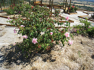 I think this is Tamara, a rose I just had for a year before moving them all here. They have a spectacular hedge of these roses around the temple at the Huntington Library in southern California, so I knew this rose would do well in a hot, dry climate. |